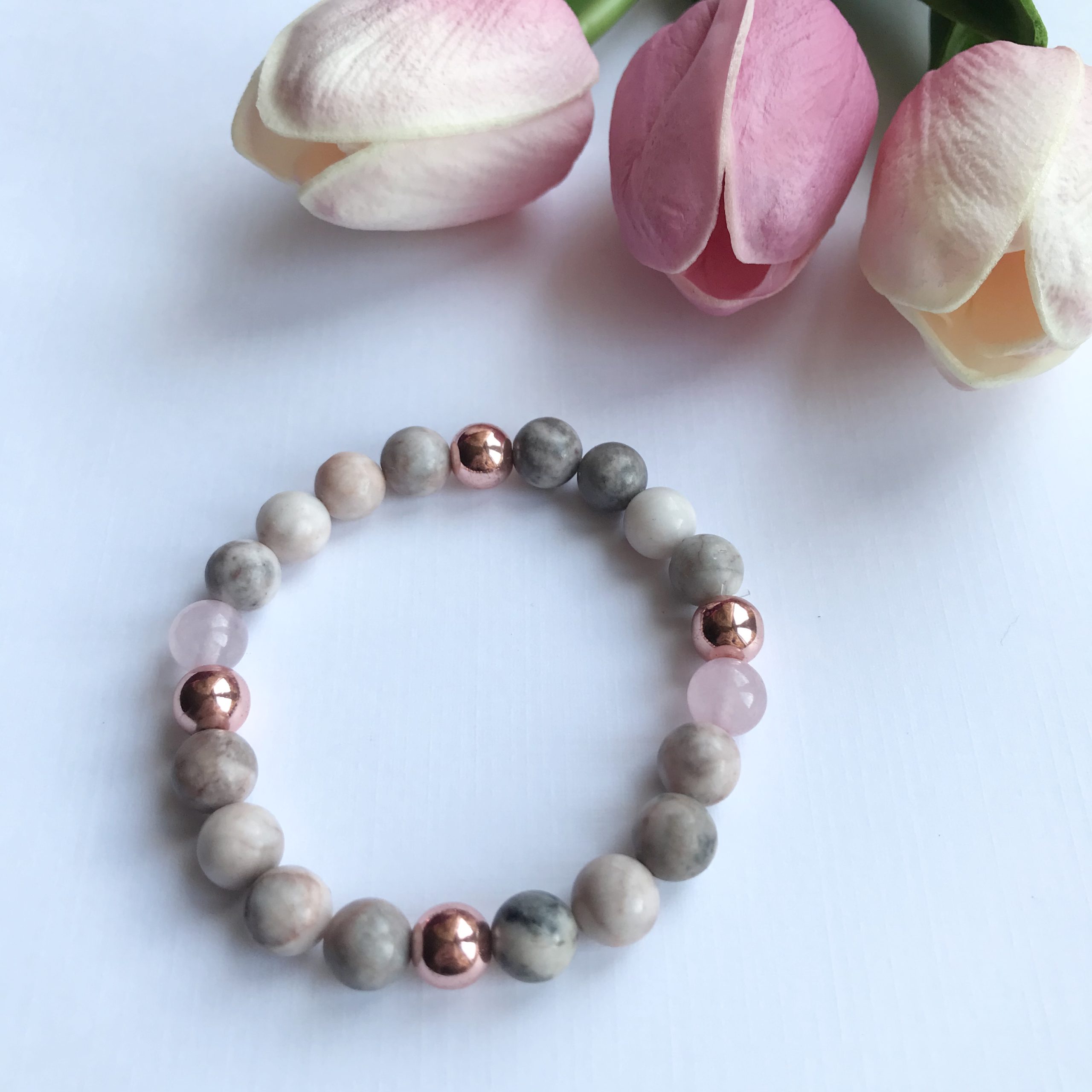 Rózsakvarc: A rózsakvarc, a feltétel nélküli szeretet és a végtelen béke köve. Termékenységfokozó, nyugtató, kommunikációt erősítő, méregtelenítő, vesejavító, vérnyomás stabilizáló és bőrregeneráló. Figyelem! Viselés hatására elszürkülhet, kifehéredhet.