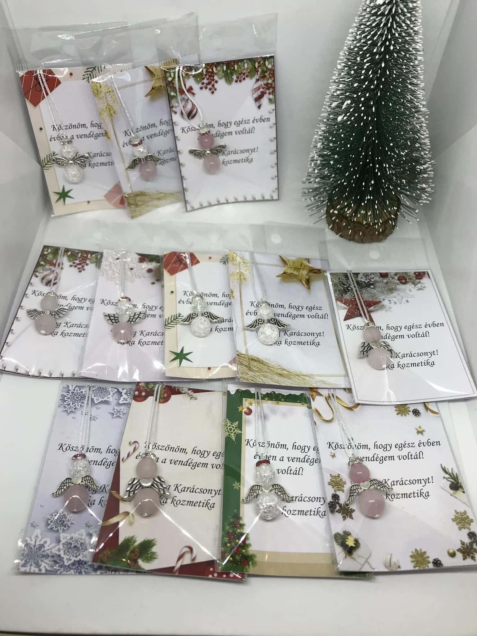 Szeretnéd meglepni kollégáidat / vendégeidet / barátaidat valami aprósággal? Válaszd különleges angyalkáinkat, rengeteg féle ásvánnyal. Ahogy a névben is benne van vegyesen küldjük, de megadhatod milyen ásványokból legyen a csomag. A szöveget és a választott angyalkákat is a rendelés végén a megjegyzés dobozba tudod megadni.