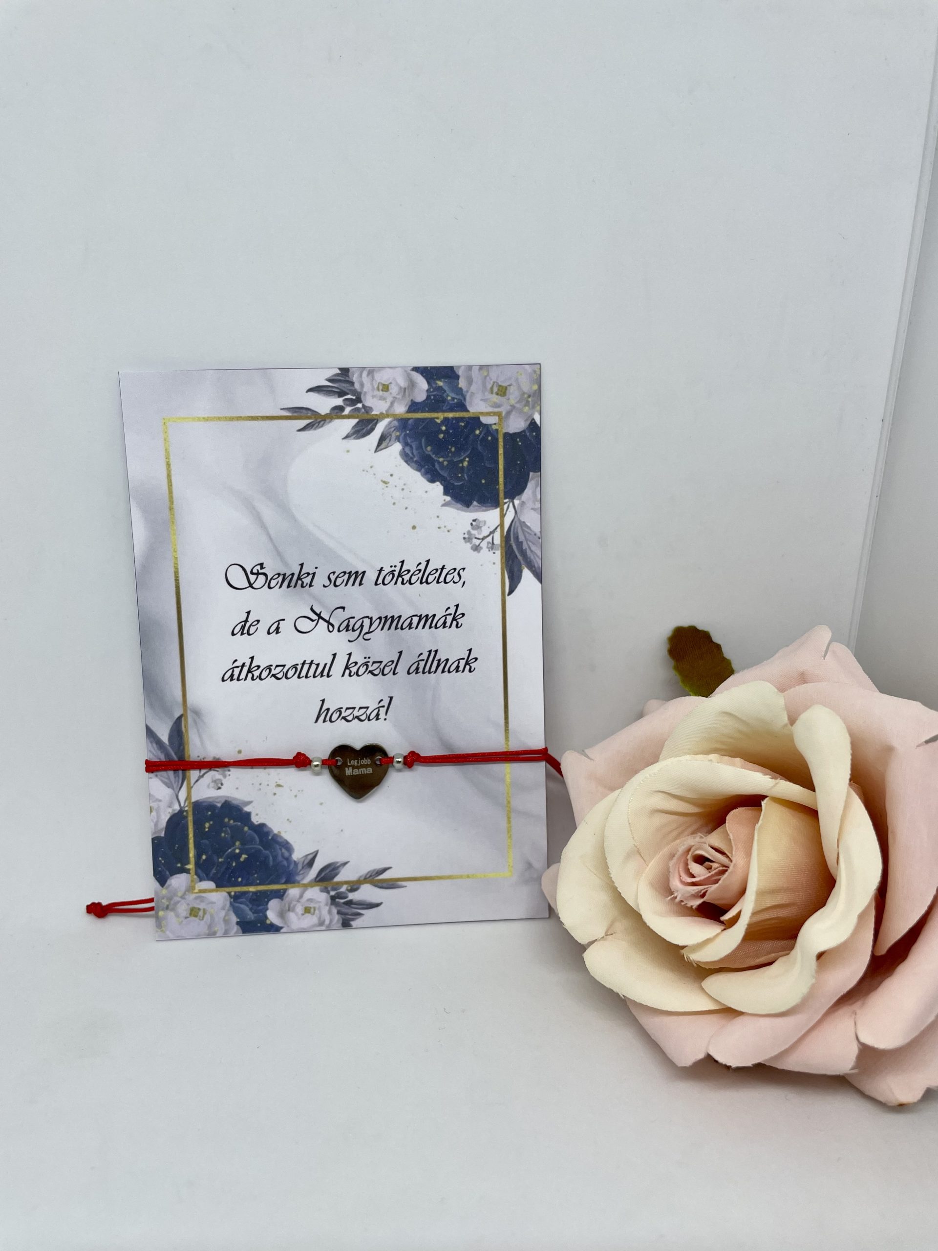 Szálas karkötő rozsdamentes acél medállal, makramé csomóval.