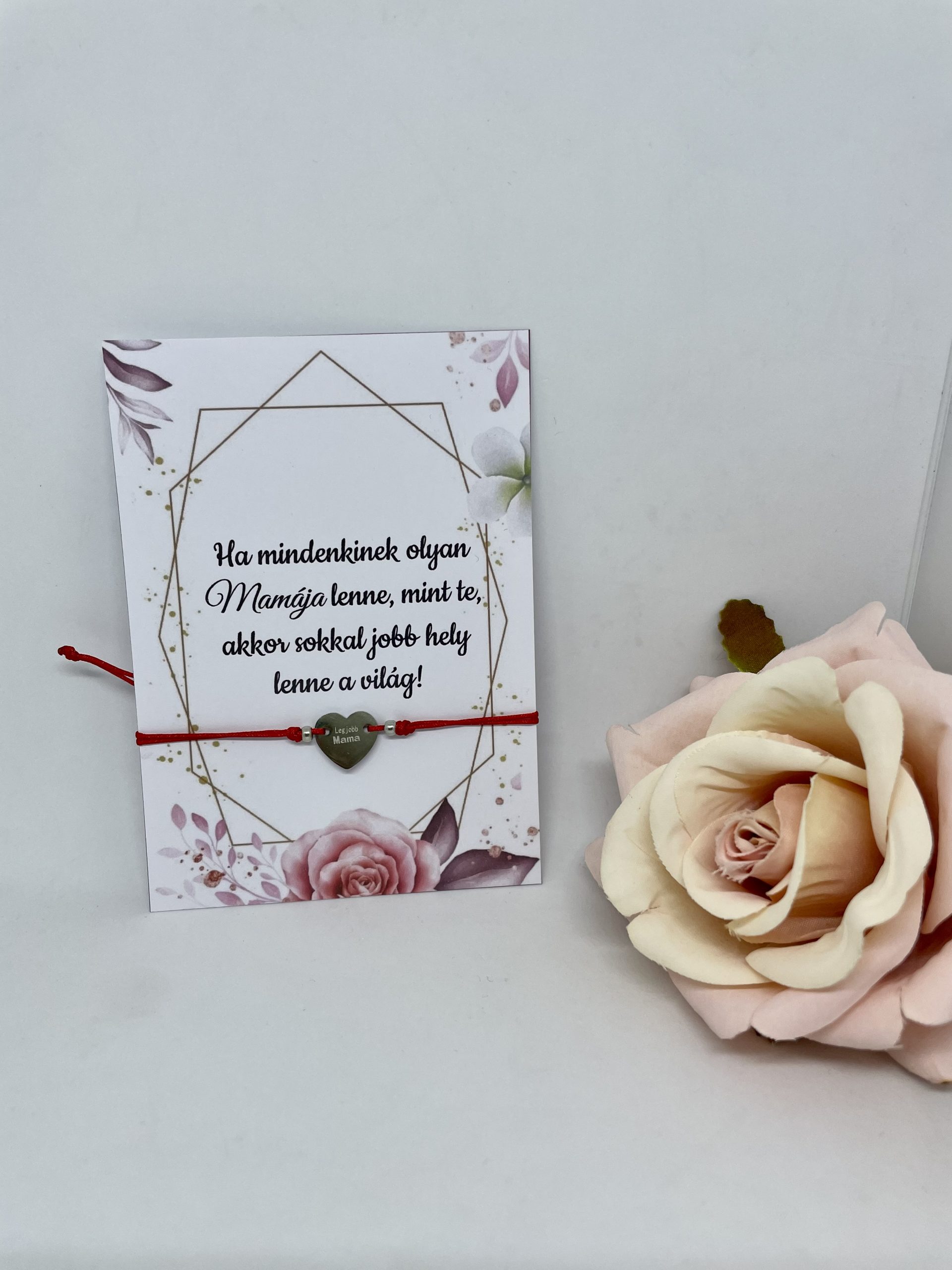 Szálas karkötő rozsdamentes acél medállal, makramé csomóval.