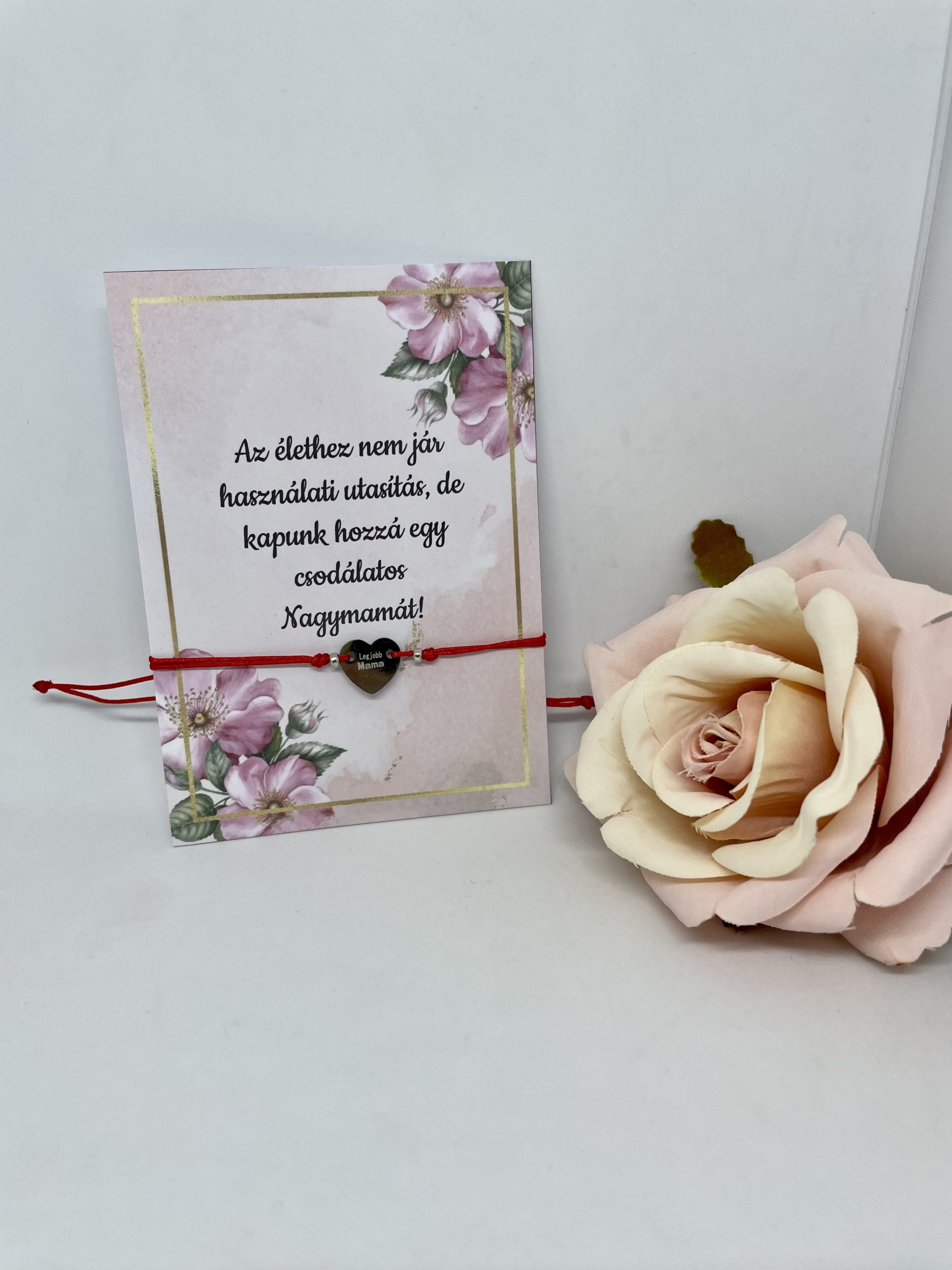 Szálas karkötő rozsdamentes acél medállal, makramé csomóval.