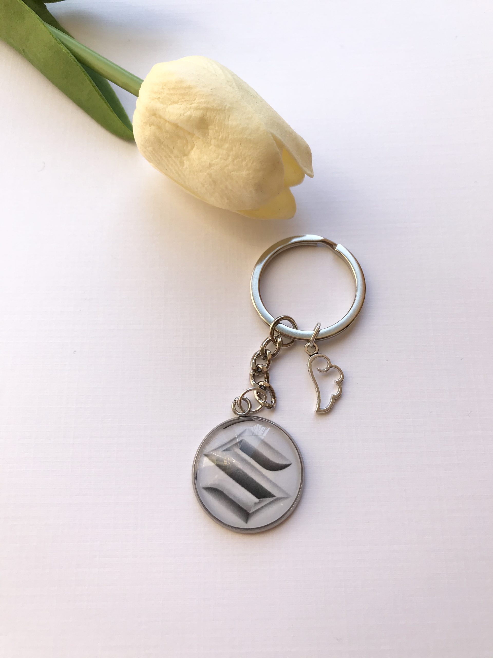 Egyedi desing alapján készült autó márka logós, 25mm üveglencsés kulcstartó.