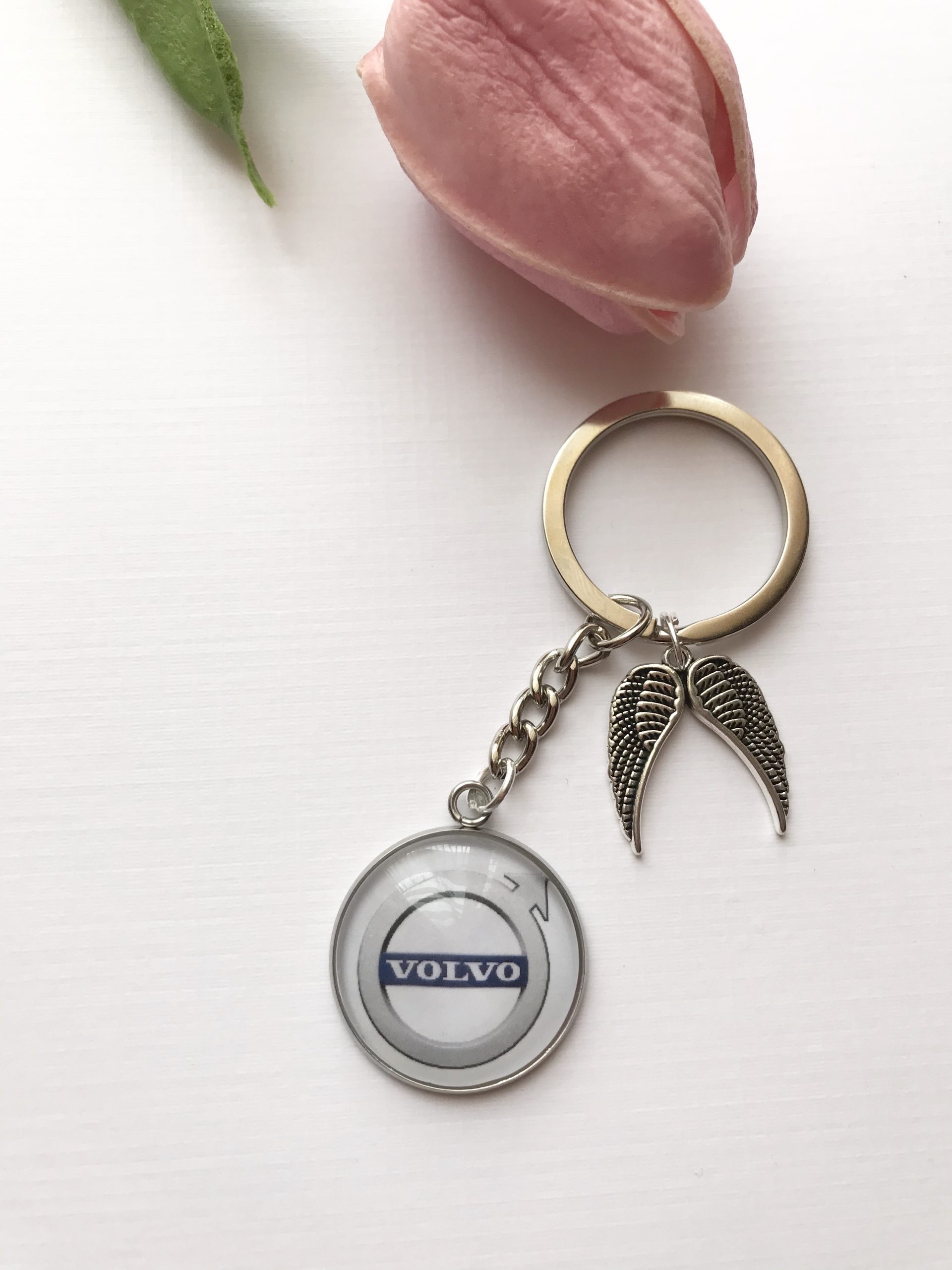 Egyedi desing alapján készült autó márka logós, 25mm üveglencsés kulcstartó.